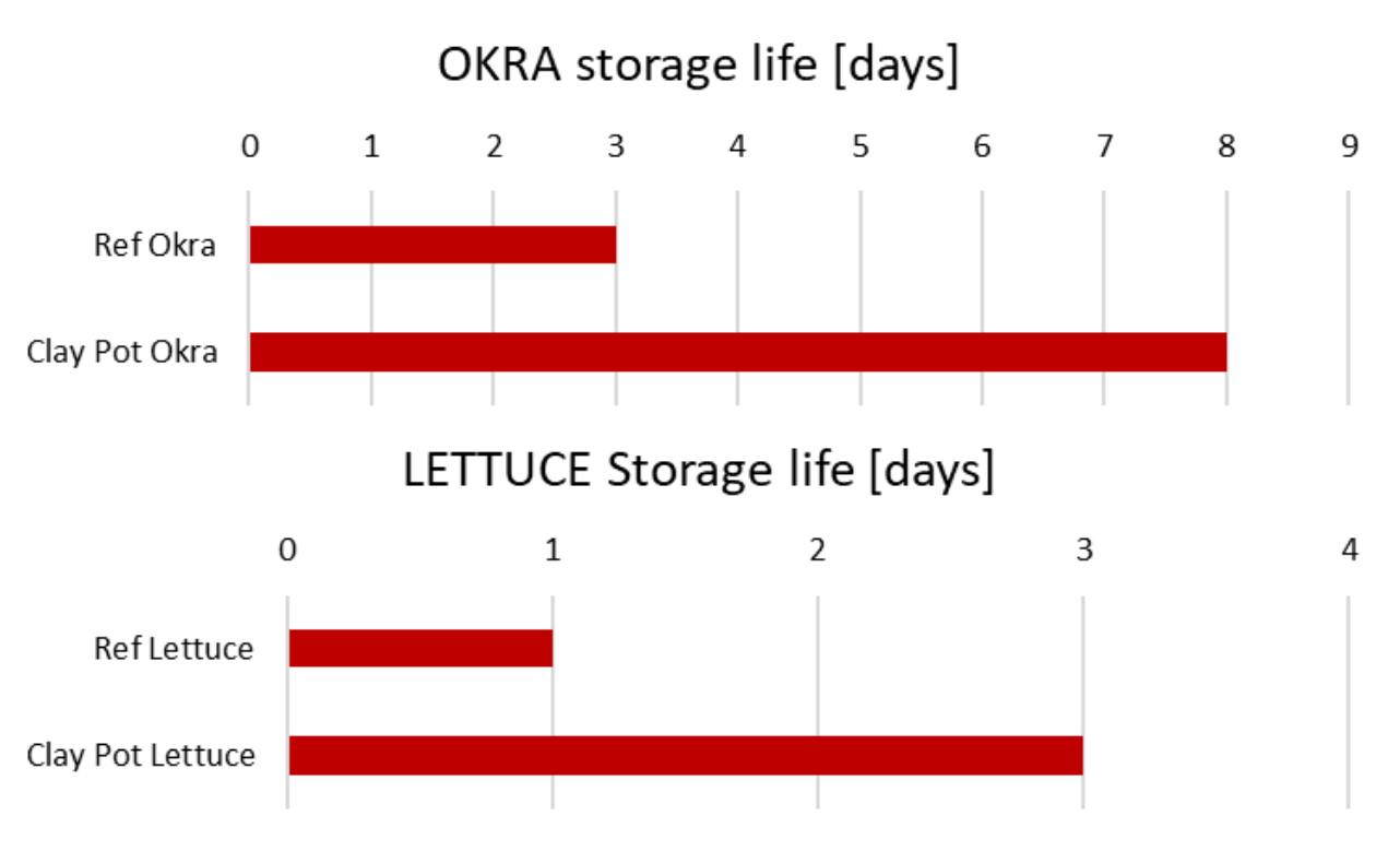 Shelf-life extension of different crop-types using the clay pot cooler.